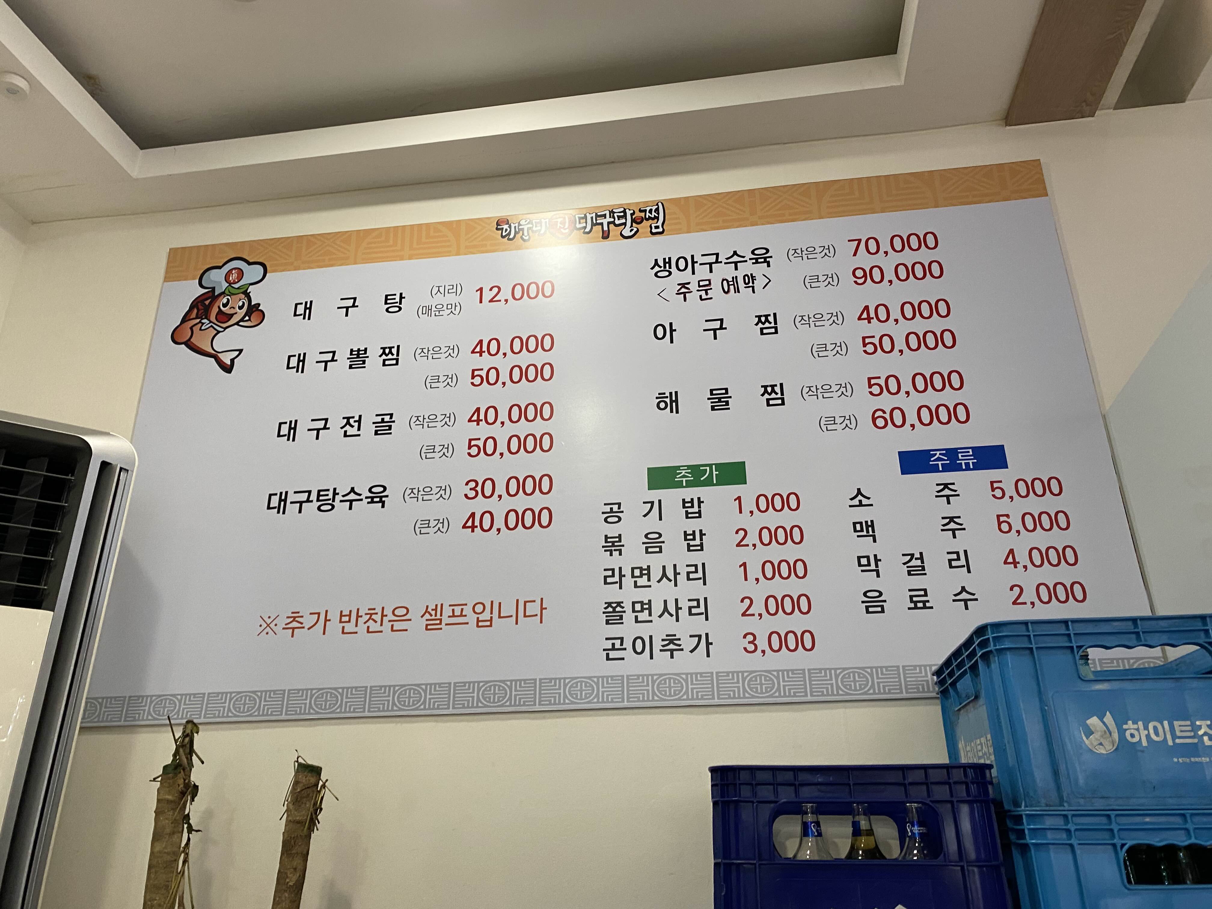 이름이 해운대 대구탕집인줄 알고 검색해도 안나와서 메뉴판 잘 보니까 가운데 진이 써져있네 ㅋㅋ