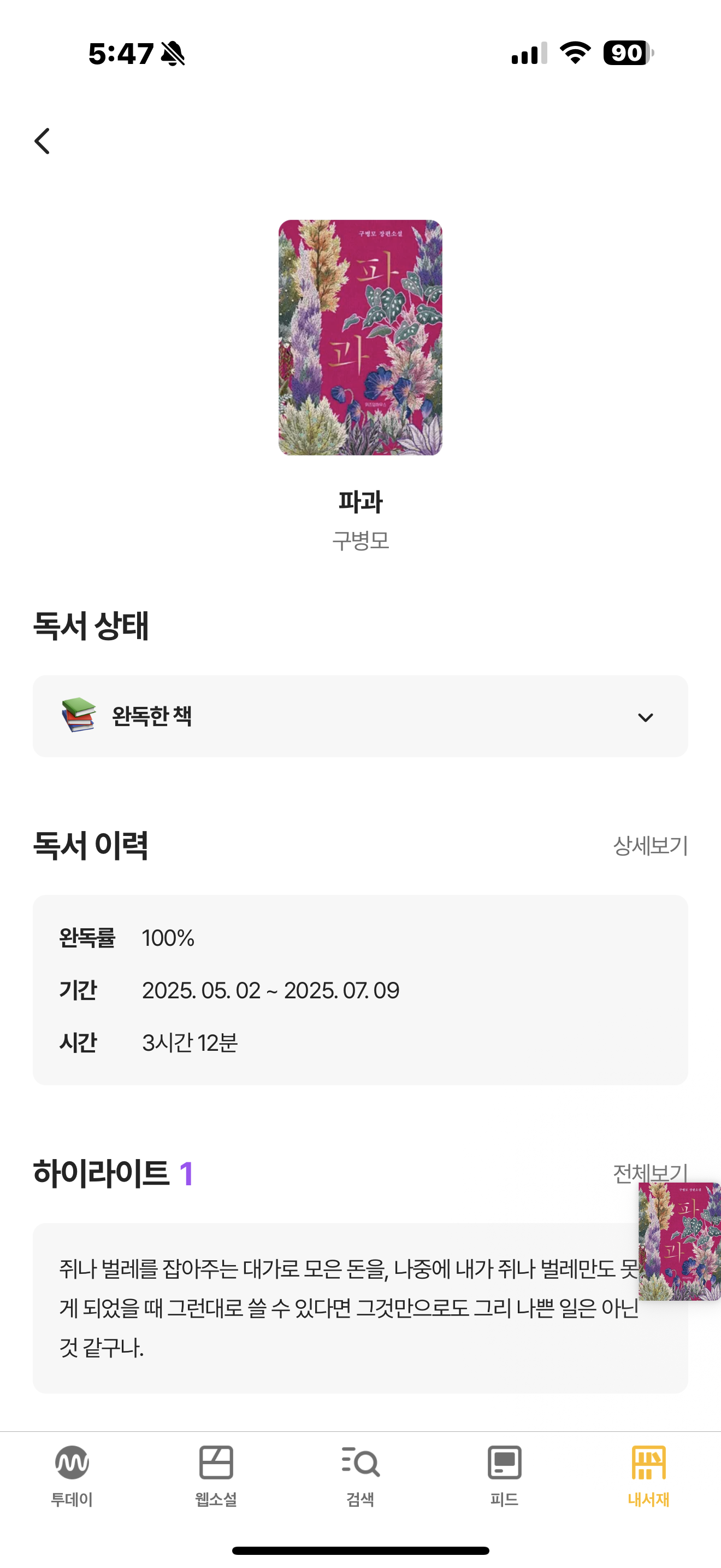 밀리에서 메인페이지에 걸려있길래 틈틈히 읽어봄ㅎ